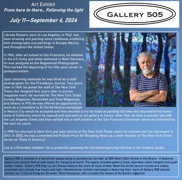 UpcomingShow! July 11- September 6, 2004 GALLERY 505 - 505 W 236th 7:00-9:00pm Recent Paintings Shop Now 18.5x26 25x38 30x30 60x72 20x20 36x36 28x39 36x36 Contact us.Leeromero23@gmail.com Name * First Name Last Name Email * Thank you!